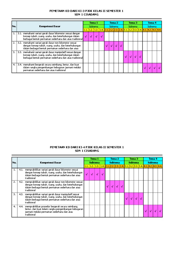 Seperti biasa, pada tahun pelajaran baru guru harus selalu mempersiapkan semua perangkat. Pemetaan standar kompetensi (sk) dan kompetensi dasar (kd) nama sekolah : Kemudian dari per bagian tema atau mata pelajaran tersebut dilakukan pengembangan sehingga tercipta subtema ke dalam pelajaran yang nantinya akan. Demikianlah pemetaan kd pjok kelas 2/ii jenjang sd/mi kurikulum 2013 edisi revisi terbaru yang dapat kami bagikan, semoga bermanfaat. Pemetaan kompetensi dasar (kd) tematik kelas 4 sd semester 2 kurikulum 2013 revisi 2017 gurusd.id. Boby prasetyo 10:39 pm on 19 april 2020 permalink balas pemetaan kd pjok kelas 6. Semangat pagi,, salah satu tugas pokok seorang guru yaitu merencanakan pembelajaran yang akan diajarkan. Pemetaan sendiri biasa digunakan oleh guru untuk mengetahui gamabaran keterkaitan antara ki dan kd. Tujuannya yaitu agar apa yang ingin disampaikan dapat berjalan sesuai dengan harapan.